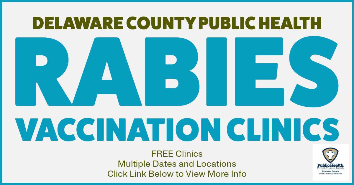 Delaware County Public Health's Free Rabies Vaccination Clinics schedule is now available.